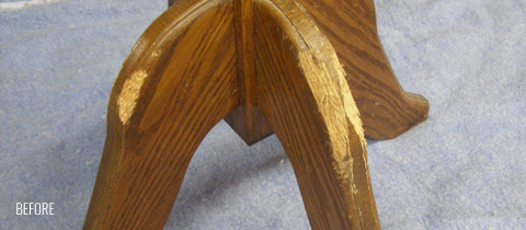 Don't spend money replacing chewed up furniture. Whether it's a minor touch up of scratched wood furniture or rebuilding a leg, arm or corner, Kelly's Furniture Service can repair your dog chewed or scratched up wood furniture for less than the cost of buying new.